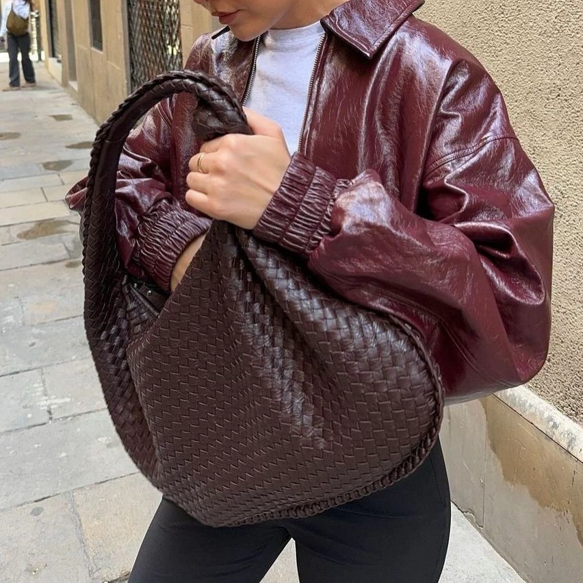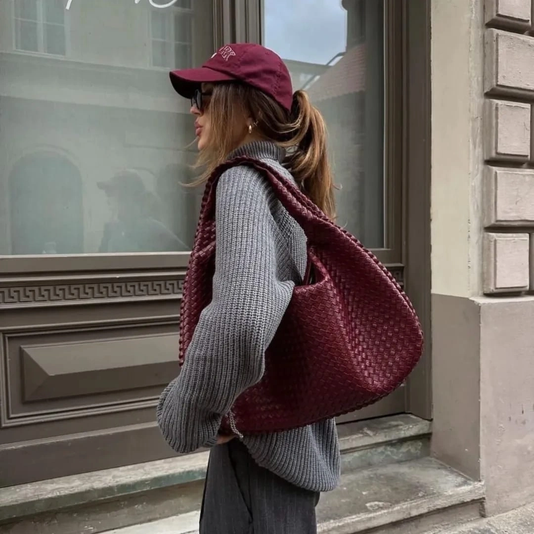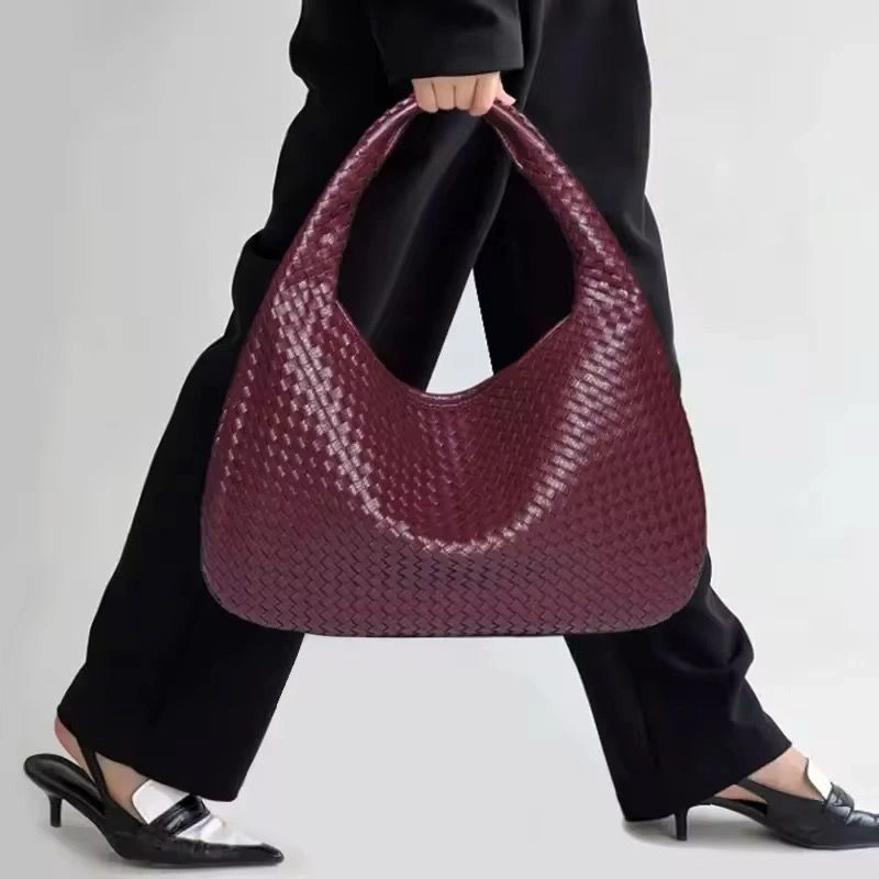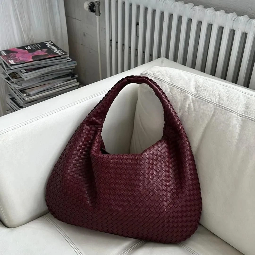 Elevate your everyday carry with the Woven Hobo Bag. Defined by its iconic intrecciato weave and soft, crescent-shaped drape, this bag is the epitome of understated luxury. The rich Merlot hue provides a sophisticated alternative to basic black, while the spacious interior and integrated shoulder strap make it the perfect "everything bag" for the modern woman.