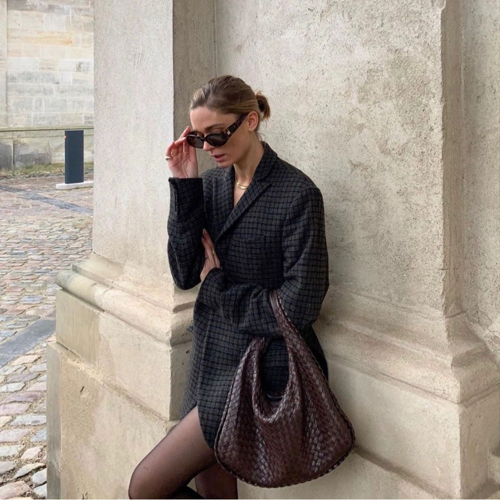 Embrace the "Scandi-Chic" aesthetic by pairing this oversized hobo with a long wool coat, chunky knit sweater, and wide-leg trousers. Its slouchy nature also looks incredible paired with a simple silk slip dress for an effortless high-low contrast.