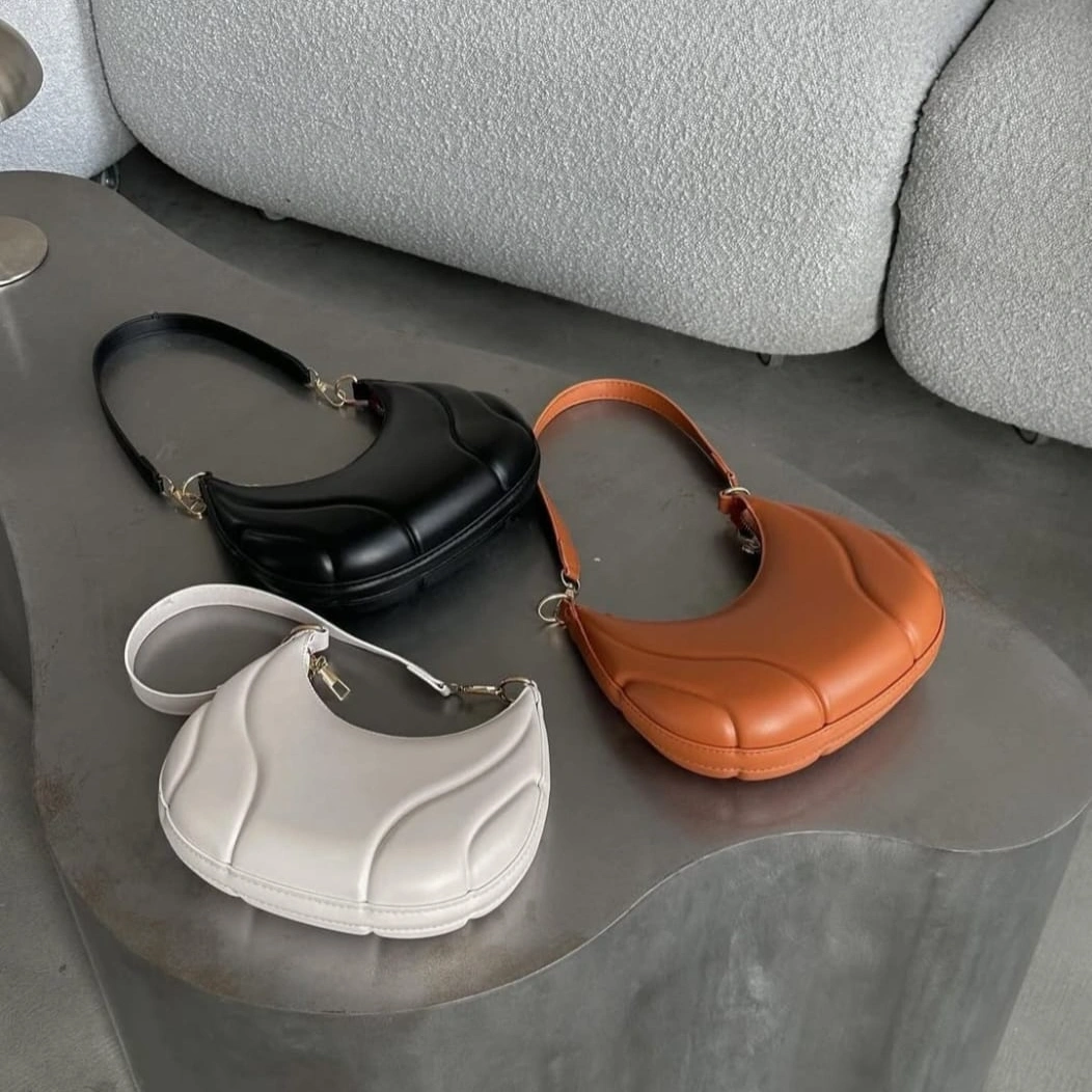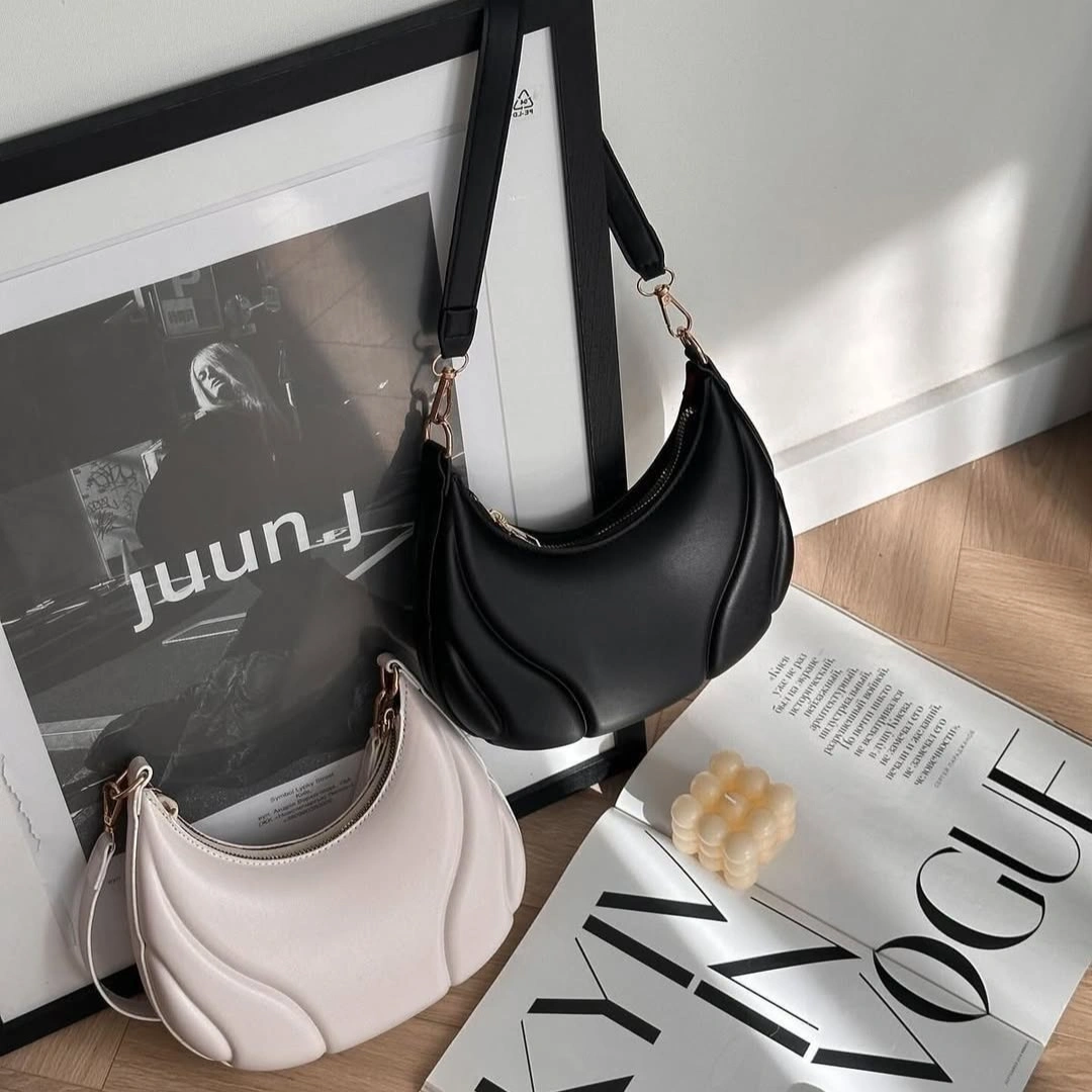 Make a bold statement with our Padded Wave Crescent Bag. Characterized by its unique, undulating 3D panels and iconic half-moon silhouette, this bag is a fusion of comfort and high-concept design. The soft, padded texture gives it a tactile, "cloud-like" feel, while the streamlined shape keeps it sophisticated and sharp.