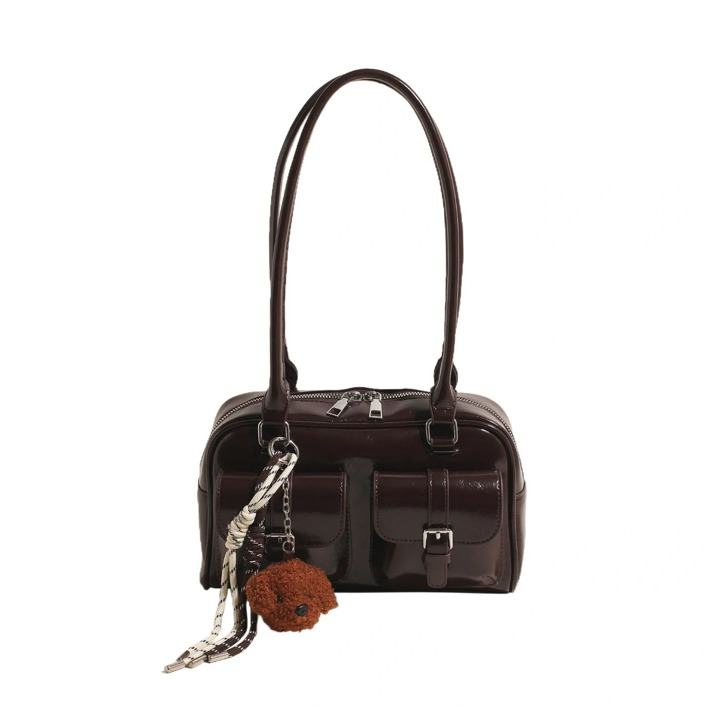 Premium Patent Finish: A deep espresso brown high-gloss exterior that is easy to maintain and adds a polished touch to any outfit.